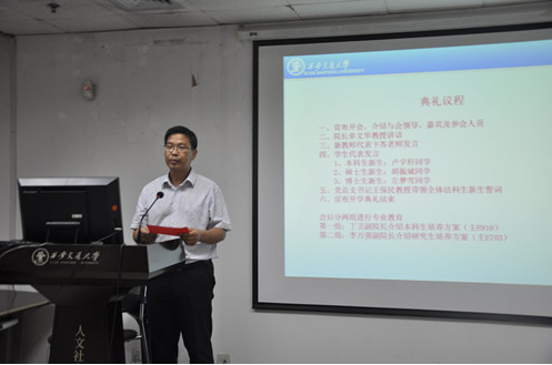 典礼仪式上,院长单文华教授首先向新同学们表示祝贺和欢迎。他在讲话中指出,2016年对法学院来说是具有特殊意义的一年。在学院师资队伍不断壮大和优秀生源不断增加的同时,首次开设并招收了面向海上丝路的“中澳丝路班”(中国本科+澳洲JD)和面向陆上丝绸之路的“中国与国际商法”全英文硕士学位班。并招收了第一批面向“中澳丝路班”学生。其中“中澳丝路班”项目更属于全球首创,堪称365游戏平台官网(中国)有限公司法学院在国际化办学方面的一个里程碑。他表示,在这次开学典礼上,新生们将在学院老师的带领下首次宣誓入学,这也将是中国最早最规范的法科生誓词之一。他对新同学们提出了两点期望。一是“不忘初心”。关于什么是初心,单院长从三个小问题引导同学们找到答案。第一个小问题是为什么要上大学。单院长强调求学是为了“明德、新民”,为了陶冶良好德行,同时洞察世事,不断推陈出新,不断更新自己、完善自己。第二个小问题是为什么选择交大。单院长提到了交大第十一任校长唐文治老先生对交大学子的定位:“须知吾人欲成学问,当为第一等学问;欲成事业,当为第一等事业;欲成人才,当为第一等人才。而欲成第一等学问、事业、人才,必先砥砺第一等品行”。单院长指出交大是一个以第一等为目标的学校,志存高远、影响卓著。第三个小问题是为什么选择交大法学院。单院长以 “正气、正道、正义、卓越” 的法学院院训为切入点,阐释了院训的意义,即正气是为人,正道是为事,正义是执业,卓越是为学。铁肩担道义,妙手著文章,这是我们法学院对学生的要求与期望,也是我们共同的“初心”。接着,单院长对同学们提出了第二点期待,即“奋勇前进”。单院长强调,作为交大法学院的学生,大家必须持续发奋努力,同时还要有勇气、有担当。他以新成立的“中澳丝路班”为例,中澳丝路班将经历层层选拔,最后只有最优秀和最坚毅的佼佼者才能达到胜利的顶点。单院长希望每一个法学院的学生有智有勇,顽强奋斗,勇敢地面对并克服挑战。最后,单院长寄语法学院全体2016级新生,祝愿新同学们在法学院获取知识,锻炼能力,培养品性,收获成功。