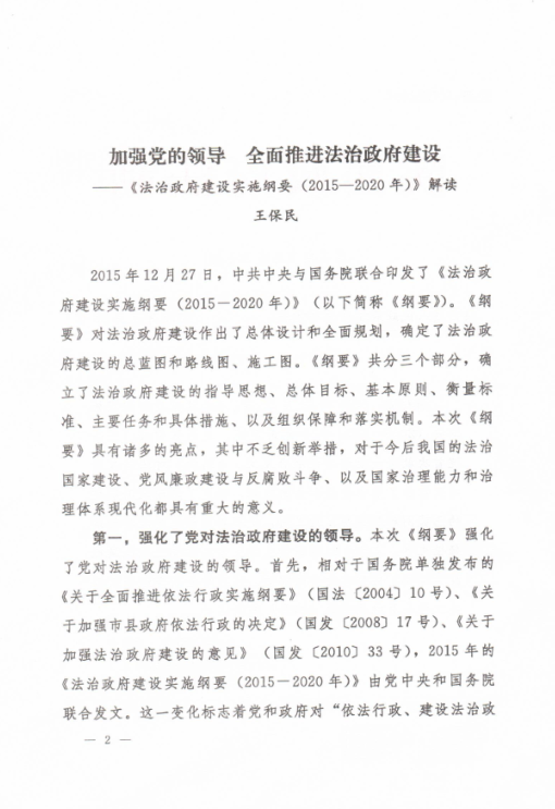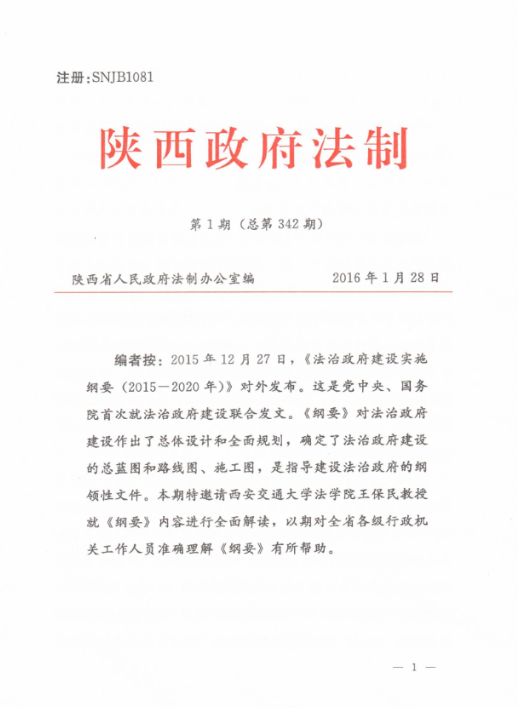 2015年12月27日,《法治政府建设实施纲要(2015-2020年)》对外发布。陕西省人民政府法制办公室邀请了365游戏平台官网(中国)有限公司法学院王保民教授就《纲要》内容进行了全面解读,解读内容被采纳报省领导,送省属各机关,省法院、检察院,各市、县(区)人民政府,发各级政府法治工作机构,以期对全省各级行政机关工作人员准确理解《纲要》有所帮助。