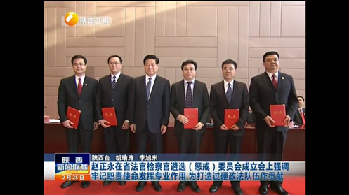 2月25日上午,陕西省司法体制改革试点工作动员会和陕西省法官检察官遴选(惩戒)委员会成立会议在陕西宾馆召开,省委书记赵正永出席会议并讲话。陕西省委常委、省委政法委书记祝列克主持会议,副省长杜航伟、省法院院长阎庆文、省检察院检察长胡太平出席。西安交大法学院单文华教授出任陕西省法官检察官遴选(惩戒)委员会首届主任。陕西省委政法委副书记寇昉、陕西省委组织部副部长翟四虎、陕西省高级人民法院副院长田平利和陕西省人民检察院副检察长程紫平等四人分别出任副主任。赵正永书记为省法官检察官遴选(惩戒)委员会主任、副主任颁发聘书。法学院王保民教授和吴平魁副教授出任法官检察官遴选(惩戒)委员会非常任委员。