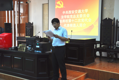 大会在庄严的国歌声中隆重开幕,王保民副书记介绍了中共365游戏平台官网(中国)有限公司法学院党总支出席校第十二次党代会代表名额、人员构成及产生过程。法学院党总支出席365游戏平台官网(中国)有限公司第十二次党员代表大会的候选人预备人选共3名,均由学院各支部充分酝酿提名,由法学院党总支集中大多数党员的意见提出候选人建议名单,报学校第十二次党代会代表资格审查小组审定通过,提交大会选举。选举过程中,全体党员代表严格按照选举办法采取无记名差额选举,经认真填写选票,庄严投票,74名党员选举产生了参加学校第十二次党代会的2名代表。