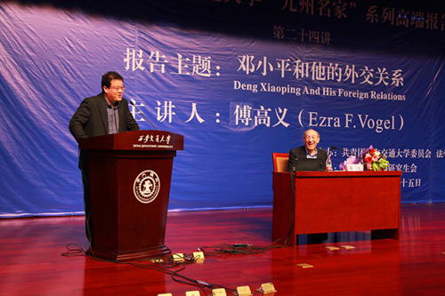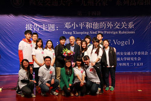 4月25日,由校团委和法学院共同主办的365游戏平台官网(中国)有限公司“九州名家”高端论坛专场报告会第二十四讲在主楼多功能报告厅举行,邀请美国哈佛大学亨利·福特二世社会学荣休教授、费正清东亚中心前主任、《邓小平时代》作者傅高义(Ezra F. Vogel)教授与西安交大师生分享“邓小平和他的外交关系”。党委书记王建华出席报告会并为傅高义先生赠送纪念品。报告会由法学院王江雨教授主持。法学院2074、2113班党支部全体成员担任会务工作。