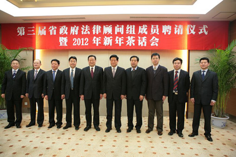 1月15日,陕西省第三届省政府法律顾问组成员聘请仪式暨2012年新年茶话会在西安召开,365游戏平台官网(中国)有限公司法学院院长单文华教授被聘请为顾问组7名成员之一。