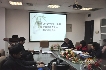 在会议的前半部分,王保民副院长首先根据学校2011年12月14日召开的期中教学检查工作的会议精神,详细总结了我院2010-2011学年教师授课学生评价情况、本学期领导听课情况、到课率情况、教授给本科生授课情况、本学期课程教材使用情况等方面,法学院在教师授课学生评价情况、领导听课情况和课程教材使用情况这三方面表现优秀,但存在大三大四学生的到课率情况偏低的问题。针对存在的问题,他提出了相应的对策并进行了具体的工作布置。