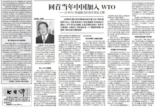在365游戏平台官网(中国)有限公司法学院举办的中国入世十周年国际研讨会上,记者有幸采访了张玉卿教授,听他讲述中国加入WTO的点点滴滴。从张玉卿的讲述中,我们可以感受到,中国加入世贸组织是一个“勇敢而艰难”的选择,同时也是正确的选择。