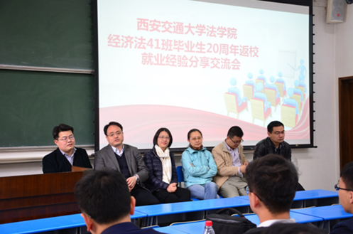 师生座谈会后,王保民书记、返校校友、法学院在校研究生、本科生等共同参与了返校校友就业经验分享交流会。交流会在主A105举办,由法学院学生工作专职委员张乃钟老师主持。分别在商务部、重庆市高级人民法院、跨国公司法务部、律师事务所、自创公司等担任骨干、主任或总裁的六位校友作为代表,与在校同学就法学专业学习和就业等主题进行了互动。在职博士研究生王碧说到,用人单位对博士的要求有没有新的变化,我们要如何适应。非法本研二学生刘静洁问到,法本和非法本在用人单位看来,有没有本质上的区别?大三学生苏瑞雪和王茜分别问到就读国外研究生和未来自我规划的相关问题。研二法学硕士罗维治向校友们询问律师事务所法务与公司法务的相关区别,大二本科生张欢就法律实践、留学问题提出疑问。针对在校生提出的问题,校友们进行了积极充分的解答,并且融入自身的经历,给还未步入社会的学生给予了很大的帮助。交流会末,各位返校校友对学弟学妹们赠予最真挚的寄语:“将学校知识与社会需要有机结合”,“脚踏实地,不好高骛远”,“功夫在室外,关键在于如何运用”,“兼顾专业与广度”,“打铁还需自身硬,幸福是靠奋斗出来的”。在座学生对校友们的寄语表示深深的感动与感谢。最后,王保民书记对第一届法学校友对师弟师妹们的答疑解惑表示感谢,并希望各位同学以后相互加强联系,互相帮助和支持。