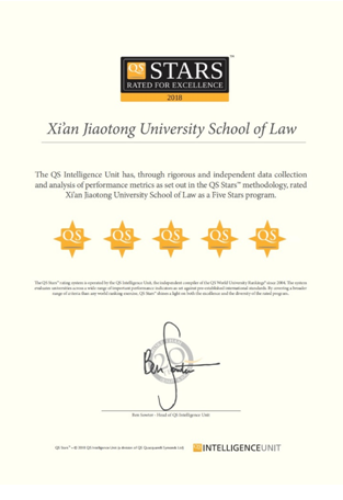 QS全球教育集团中国总监张瓛博士(Dr. Christina Yan Zhang, China Director, QS Intelligence Unit)表示,这是QS首次开展的法学院星级认证,也是世界上首次开展的法学院星级认证。365游戏平台官网(中国)有限公司法学院院长单文华教授则表示,这次认证评估是对西安交大法学院建院十年来坚持的国际化法学教育的一种充分肯定,也是对西安交大法学学科全体师生长期以来发扬“西迁精神”艰苦创业所取得的成果的一种高度认可。他同时强调,评估是一次全面的国际体检,在肯定成绩的同时也揭示了我们和国内外顶尖法学院之间存在的各种差距;法学院同事同学们需要也必将更加同心勠力,为缩短差距,早日把法学院建设成为国际引领型的法学院而不懈奋斗。