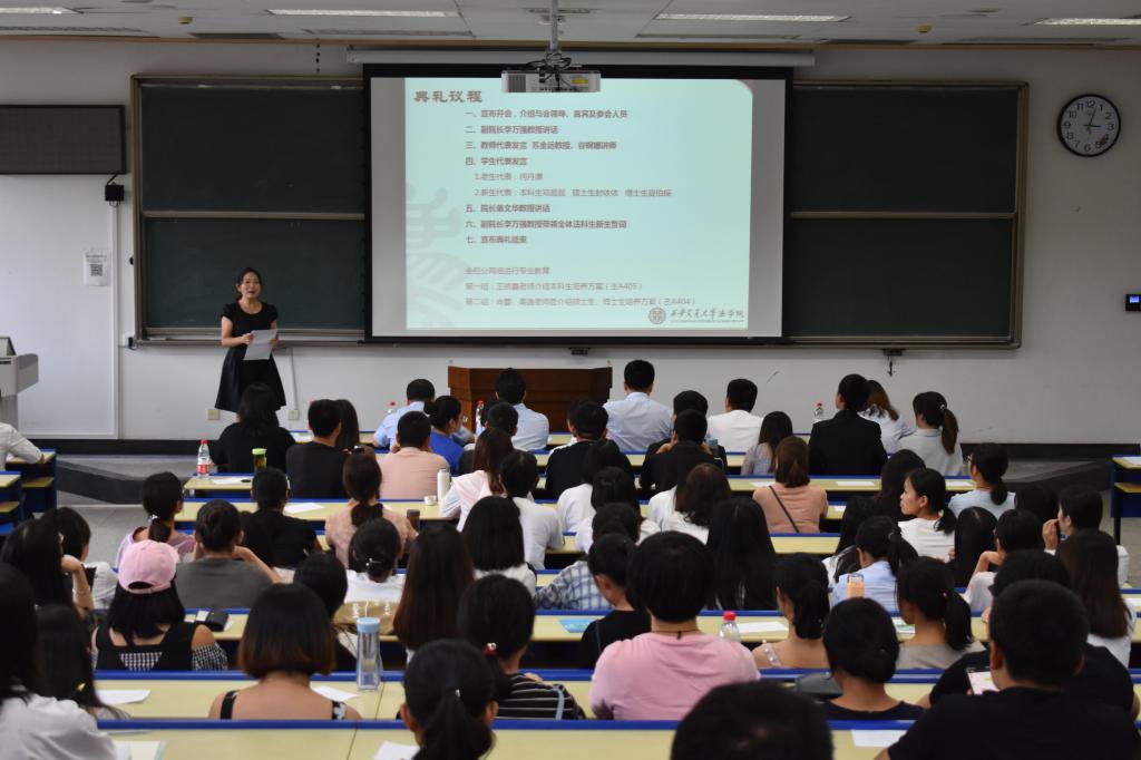 张乃钟老师向全体新生转达了党总支书记王保民教授对同学们的祝福和问候。她概括介绍了本学期研究生思想教育将开展的重点工作并对近期学生工作进行了部署和安排。