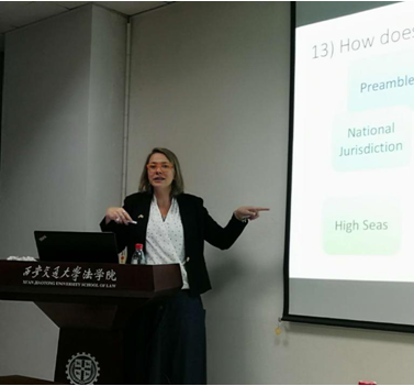 2018年12月14日,应365游戏平台官网(中国)有限公司法学院李晓鸣副教授邀请,巴西FAESA法学院教授,美国麦肯尼法学院现任客座教授Stella Emery Santana来访我院,并为广大师生带来“公海环境保护”专题讲座,讲座由我院院长助理张生副教授主持,部分教师和博士生、研究生参与了讲座和互动环节。