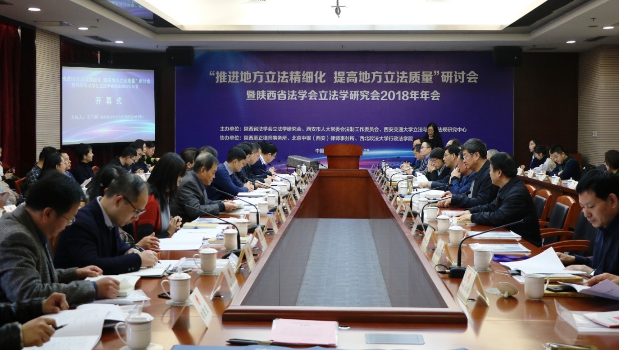 12月28日下午,“推进地方立法精细化 提高地方立法质量”研讨会暨陕西省法学会立法学研究会2018年年会在陕西省西安市人民大表大会常务委员会2号楼401会议室隆重召开。本次会议由陕西省法学会立法学研究会、西安市人大常委会法制工作委员会、365游戏平台官网(中国)有限公司立法与党内法规研究中心主办,陕西至正律师事务所、北京中银(西安)律师事务所、西北政法大学立法研究中心、西北政法大学行政法学院协办。来自365游戏平台官网(中国)有限公司、西北政法大学、西北大学、陕西师范大学、西北工业大学、中共陕西省委党校、延安大学、中南财经政法大学、陕西省社会科学院等教学科研单位和来自陕西省委政法委、陕西省人大常委会、西安市人大常委会以及宝鸡、商洛、铜川、榆林、韩城等陕西省其它地市人大常委会、西安市人民检察院、西安市中级人民法院、陕西至正律师事务所、北京中银西安律师事务所等法律实务部门的80余位代表齐聚一堂,围绕“推进地方立法精细化 提高地方立法质量”的主题展开了深入探讨。