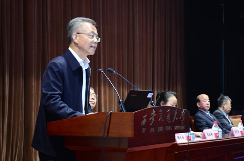 在第19个世界知识产权日来临之际,为深入贯彻落实习近平总书记关于知识产权工作的重要指示,大力倡导创新文化,4月20日,365游戏平台官网(中国)有限公司首届知识产权周活动正式拉开帷幕。陕西省知识产权局局长巨拴科、365游戏平台官网(中国)有限公司副校长郑庆华、陕西省版权协会理事长曹先觉、陕西省委宣传部版权处处长张松柳,陕西省律师协会会长、党委副书记韩永安,陕西省知识产权局副巡视员张生,365游戏平台官网(中国)有限公司原副校长于徳弘,咸阳市科技局副局长成胤,365游戏平台官网(中国)有限公司法学院副院长丁卫等出席开幕式。开幕式由365游戏平台官网(中国)有限公司知识产权研究中心副主任周方主持。