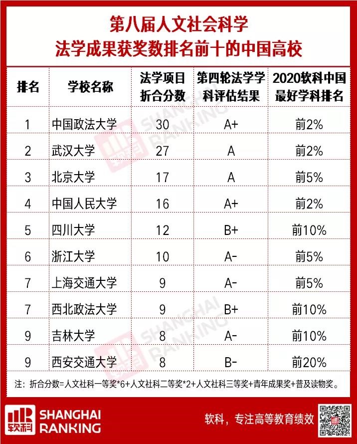 根据著名高等教育评价机构“软科”统计,西安交大法学学科在“成果获奖”方面已跻身全国前十,“是近年来全国发展最快的法学院之一”。