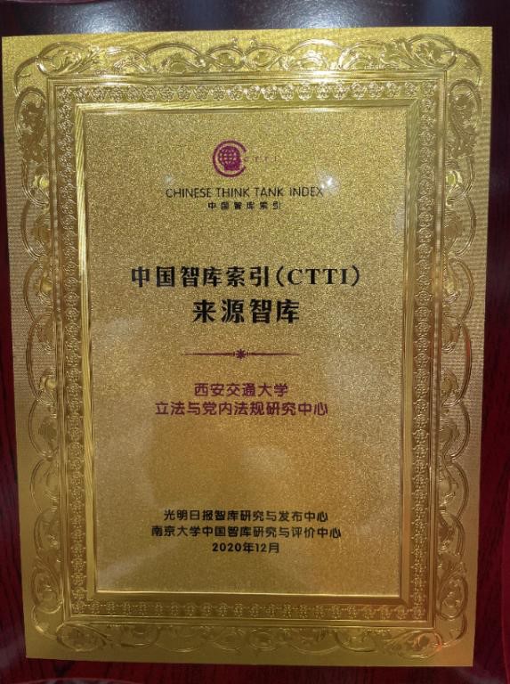 “2020新型智库治理暨思想理论传播高峰论坛”在江苏南京举行,南京大学中国智库研究与评价中心和光明日报智库研究与发布中心共同发布了2020年CTTI来源智库增补名单,我们“立法与党内法规研究中心”从全国351家申请增补的研究机构中脱颖而出,位列本年度新增补的99家研究机构之中,这也被列为2020年度党内法规制度建设十大热点事件之一。这是一次认可,也是鼓励,一直以来我们中心致力于构建一流的立法与党内法规研究高端智库,一流立法与党内法规创新研究基地以及一流的立法和党内法规人才培养。此次增补是CTTI来源智库的新成员,我们将以“中国智库索引(CTTI)”为纽带,秉持开放的发展理念,为构建中国特色新型智库共同体贡献新的力量。