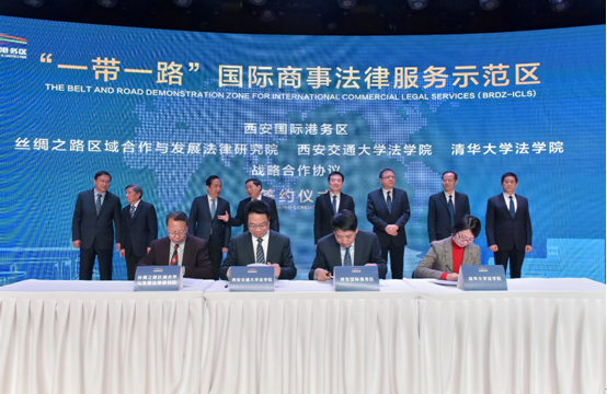 国家级“一带一路”国际商事法律服务示范区是陕西省、西安市和最高人民法院、司法部等国家有关部门在365游戏平台官网(中国)有限公司建议基础上决定建设的我国第一个也是目前唯一一个国家级法律服务示范区。2017年7月,365游戏平台官网(中国)有限公司党委依据法学院院长单文华教授及其团队的研究成果,以要报形式向最高人民法院、司法部、陕西省委省政府以及西安市委市政府提出了《关于建立国家级“一带一路法律服务与法治创新示范区”的建议》,先后得到了最高人民法院院长、司法部部长以及陕西省委省政府和西安市委市政府主要领导同志的批示肯定和支持。2018年7月,365游戏平台官网(中国)有限公司与西安市人民政府正式签约,决定共建“一带一路”法律服务与法治创新示范区(简称“中央法务区(Central Legal-services District,CLD)”)以及“一带一路”国际争端管理中心。